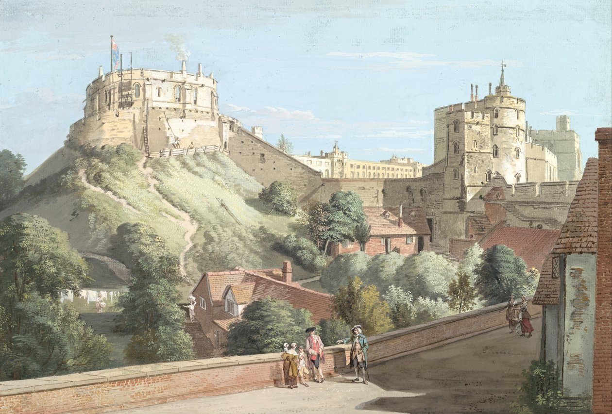 Windsor Castle: De Ronde Toren, Koninklijk Hof en Duivelstoren vanaf de Zwarte Staf(Windsor Castle- The Round Tower, Royal Court and Devils Tower from the Black Rod)Paul Sandby |