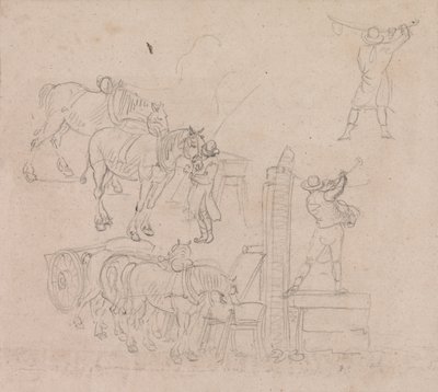 Studies van een voerman die water pompt voor zijn paarden(Studies of a carter pumping water for his horses (pencil on paper))Paul Sandby |