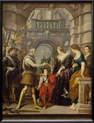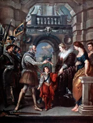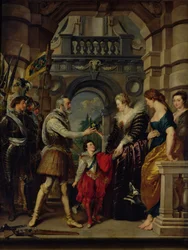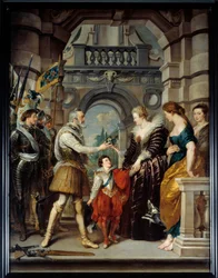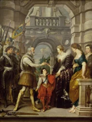 De Medici-cyclus: Henri IV (1553-1610) vertrekt naar de oorlog in Duitsland en draagt het bestuur van zijn koninkrijk over aan Marie de Medici (1573-1642) 20 maart 1610, 1621-25(The Medici Cycle: Henri IV (1553-1610) leaving for the war in Germany and bestowing the government of his kingdom to Marie de Medici (1573-1642) 20th March 1610, 1621-25 )Peter Paul Rubens |