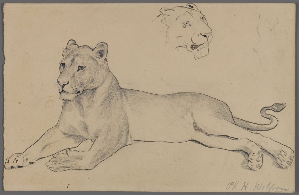 Zittende leeuwin(Seated lioness (graphite & ink on paper))Philip H. Wolfrom |