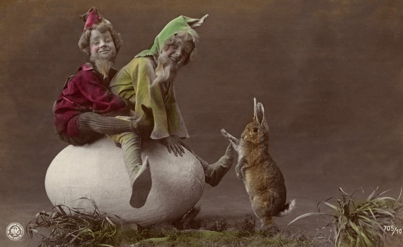 Paaskaart met elfen(Easter card with elves (colour photo))Photographer German |