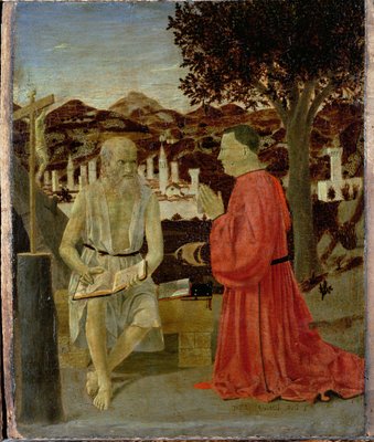 Hiëronymus en een toegewijde (schilderij op hout)(Saint Jerome and a devotee (painting on wood))Piero della Francesca |