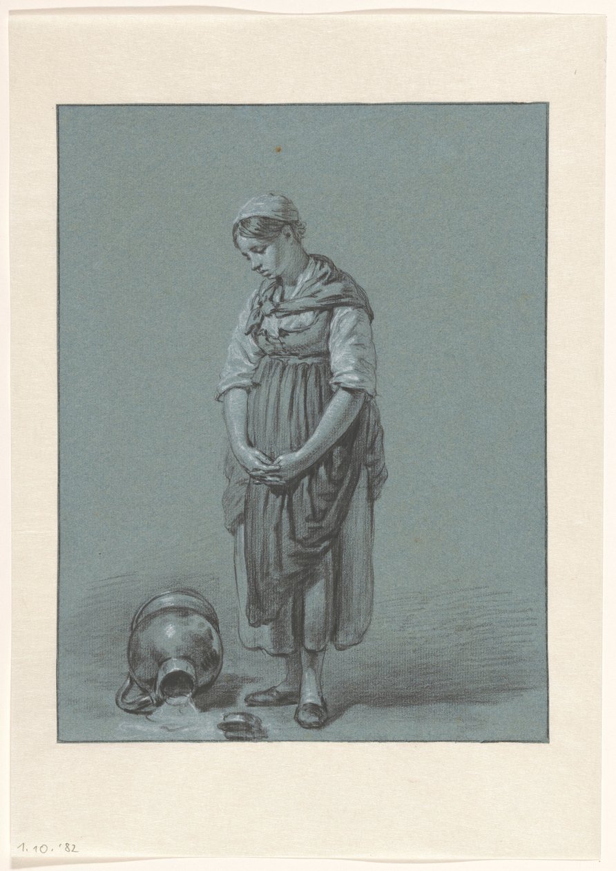 Meisje staand bij een omgevallen melkkan(Girl Standing by an Overturned Milk Can)Pieter Christoffel Wonder(draughtsman) |