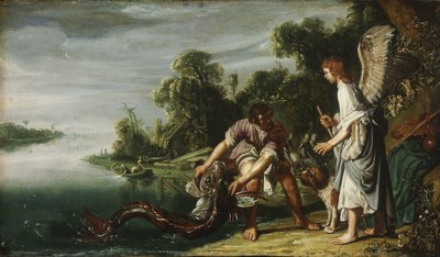 De jonge Tobias en de engel (olieverfschilderij)(Young Tobias and the Angel (oil painting))Pieter Lastman |