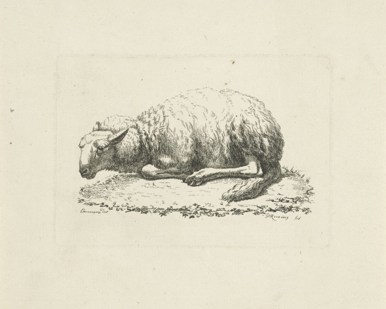 Liggend schaap(Lying Sheep)Pieter Roosing(print maker),Balthasar Paul Ommeganck(after design by) |