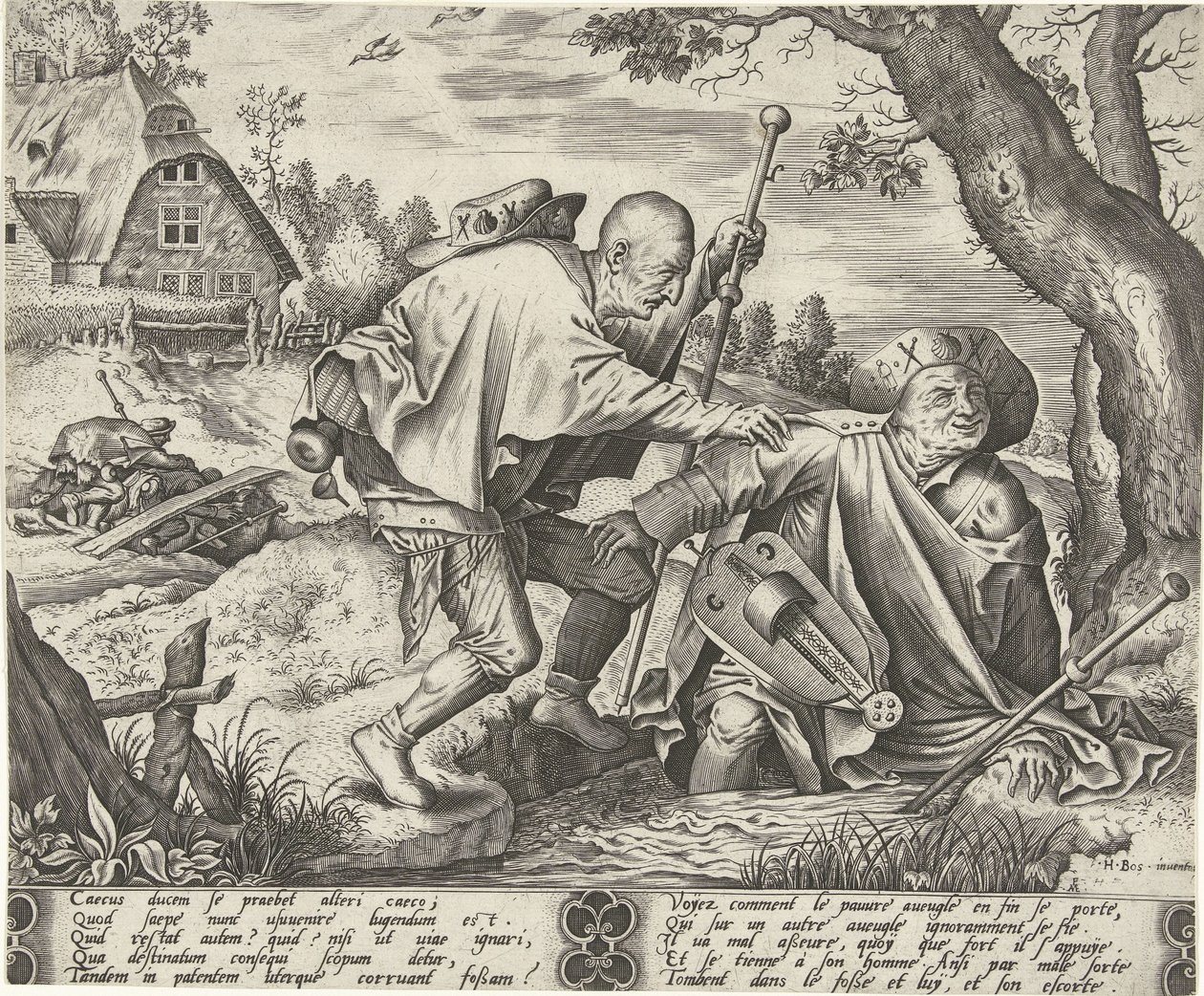 Parabel van de twee blinden(Parable of the Two Blind Men)Pieter van der Heyden(print maker),Jheronimus Bosch(after design by) |