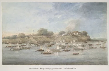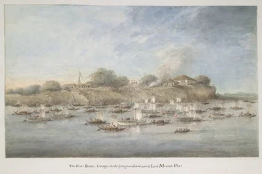 De vloot van Lord Hastings op de rivier, met vele pinassen en budgerows(Lord Hastings' flotilla on the river, with many pinnace budgerows)Ram Sita |