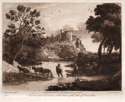 Uitzicht op Tivoli bij Zonsondergang, gepubliceerd 1775(View of Tivoli at Sunset, published 1775 (mezzotint with etching))Richard Earlom |