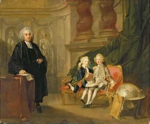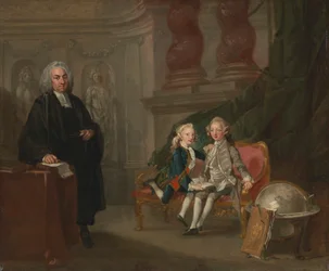 Prins George en prins Edward Augustus, zonen van Frederick, prins van Wales, met hun tutor Dr. Francis Ayscough