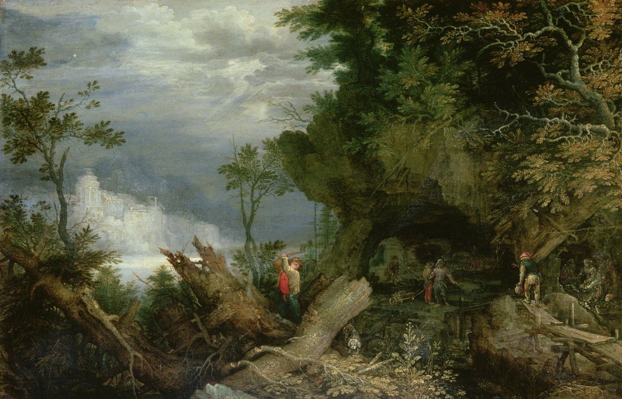 Een rotsachtig landschap met de ingang van een mijn(A Rocky Landscape with the Entrance to a Mine )Roelandt Jacobsz. Savery |