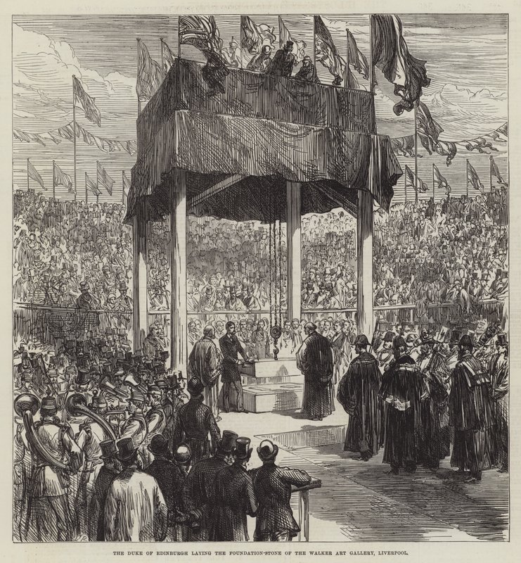 De hertog van Edinburgh legt de eerste steen van de Walker Art Gallery, Liverpool(The Duke of Edinburgh laying the Foundation-Stone of the Walker Art Gallery, Liverpool )Sir John Charles Robinson |