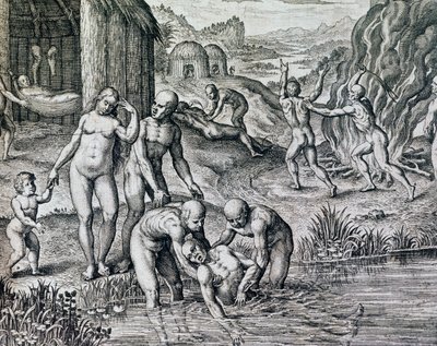 Remedies gebruikt door inboorlingen tegen ziekte, gravure uit Historia America(Remedies used by natives against disease, engraving from Historia America, by Theodor de Bry (1528-1598), Frankfurt)Theodore de Bry |
