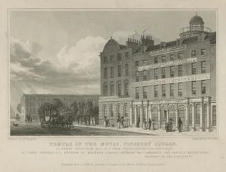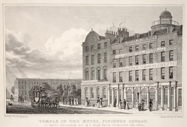 Temple of the Muses, Finsbury Square, uit 'London and its Environs in the Nineteenth Century' gepubliceerd door Jones en Co., 1827-1829(Temple of the Muses, Finsbury Square, from 'London and it's Environs in the Nineteenth Century' pub. Jones und Co., 1827-1829 )Thomas Hosmer Shepherd |