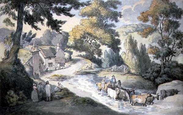 Landschap met vee dat een stroom doorwaadt(Landscape with Cattle Fording a Stream)Thomas Rowlandson |