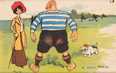 (Large footballer with a woman walking her dog (colour litho))Tom Browne |