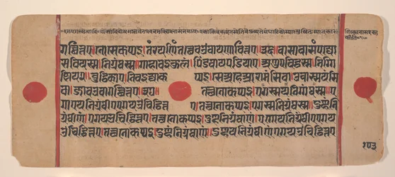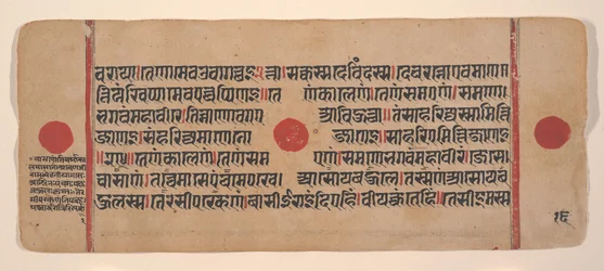 Pagina uit een verspreid Kalpa Sutra Jain rituelenboek, 15e eeuw(Page from a Dispersed Kalpa Sutra Jain Book of Rituals, 15th century. )Unbekannt |