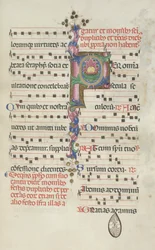 Manuscriptblad met gebladerde initiaal P, uit een antifonarium, ca. 1250-60 · Unbekannt. Beschikbaar als kunstdruk op canvas, fotopapier, aquarelkarton, ongecoat papier of Japans papier.