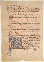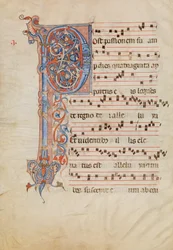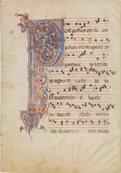 (Manuscript Leaf with Foliated Initial P, from an Antiphonary, ca. 1250-60. )