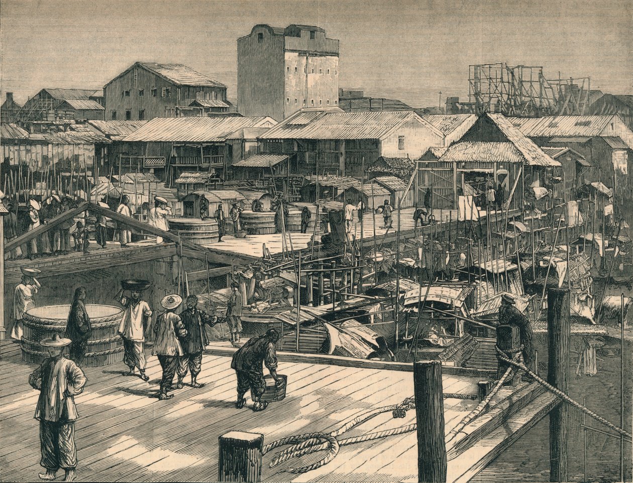 De recente rellen in Canton, c1883(The Recent Riots at Canton, c1883. )Unbekannt |
