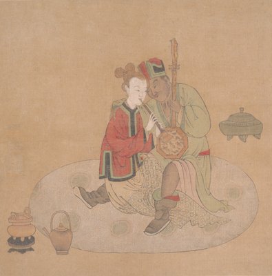 Tartaarse officier met blonde dame die muziekinstrumenten bespelen, 19e eeuw(Tartar Officer with Blond Lady Playing Musical Instruments, 19th century. )Unbekannt |