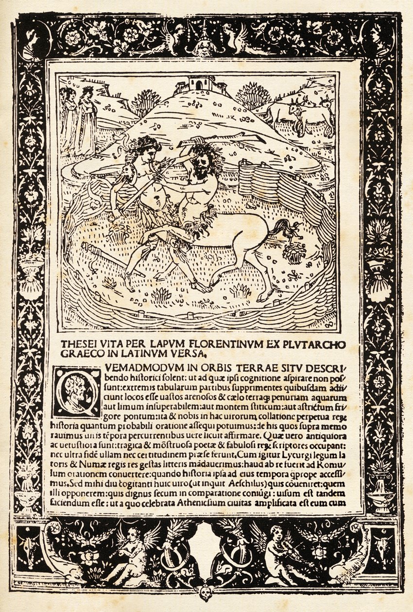 Gevecht van Theseus met de Minotaurus(Fight Of Teseo With The Minotauro (woodcut))Unknown artist |