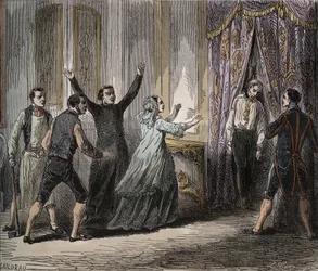 Gabrielle de Vergy betwist haar verloofde, Eudes de Fayel, die jaloers is op de vriendschap die ze heeft met haar neef, Albert de Nozereau. Scène van een 12e-eeuwse legende. Gravure uit 1871 in Voorstelling van Arrestatie van hertogin van Berry (1798-1870 Marie-Caroline de Bourbon-Sicilië) in Nantes op 7 november De Inwijding, uit Maria de Squire Western Ayant la prétention de faire partie du beau monde Illustratie voor De Barbier van Sevilla door Rossini (gravure) Huwelijk van Martin Guerre (circa 1524) en Bertrande de Rols in Artigat (Ariege) op 15 mei 1539. Gravure uit 1871 in Arrestatie van Madame Roland op 1 juni 1793 in Parijs - Arrestatie van Madame Roland (Manon Roland, geboren Jeanne Marie Philippon) Jeanne d Sam Slys reizen in de stad Comédie Française: voorstelling van L Voorstelling van een komische opera: Lodewijk XIV in De Adelborst wordt door de vijand aan boord genomen, illustratie uit Julita Guagnini vroeg koningin Catherine de Medicis (Caterina de Medici) (1519-1589) om haar in dienst te nemen. Ze werd de minnares van Louis de Bussy d Bonaparte en de Keizerin ontsnappen aan de brand op het bal van de Oostenrijkse ambassadeur Charlotte Corday (1768-1793) opgegraven door Francois Chabot (1756-1794) - Gravure in Voorstelling in het Odeon-theater van het melodrama in drie bedrijven en vijf schilderijen Mevrouw Sextus troost zichzelf met een klein feestje Avond georganiseerd na Don Antonio. Don Quichot ontdekt zonder de geneugten van dans te waarderen - uit "Don Quichot van La Mancha" van Miguel Cervantes De Groene Kamer in het Drury Lane Theater, 1821, 1920 Illustratie uit Les Feuilles d’Automne, 19e eeuw Na de straf (gravure) De arrestatie van de Graaf van Neipperg (1775-1829) op bevel van Napoleon I (1769-1821). Illustratie van Scène uit Little Em Mr. Micawber bereikt de ondergang van Heep