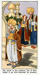 Maruf in de grot: Verhaal van Ma'ruf de redder 'De duizend-en-een-nachten' (de 1001 nachten of Le mille e una notte, Arabische Nachten), Chromolithografie uit de late 19e eeuw(Maruf in the cave: Tale of Ma'ruf (Maruf) the saver “The thousand and one nights” (the 1001 nights or Le mille e una notte, Arabian Nights), Chromolithography of the end of the 19th century.)Unknown artist |