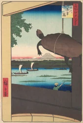 Mannenbrug, Fukagawa, uit de serie 'Honderd beroemde uitzichten van Edo'(Mannen Bridge, Fukagawa (Fukagawa Mannenbashi), from the series "One Hundred Famous Views of Edo (Meisho Edo hyakkei)")Utagawa Hiroshige |