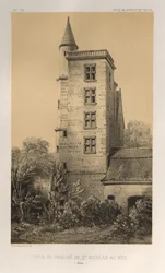 Toren van de priorij van St. Nicolas-Au-Bois (Aisne)(Architecture Pittoresque ou Monuments des xveme. Et xvieme. Siecles: Chateaux De France des XV et XVI Siecles: Pl. 44, Tour Du Prieuré De St. Nicolas-Au-Bois (Aisne))Victor Petit,Charles Boivin (publisher and editor); Lith de Godard a Paris (printer)(published by) |