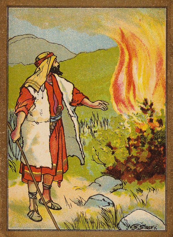 Mozes en de brandende struik(Moses and the Burning Bush (colour litho))W.S. Stacey |