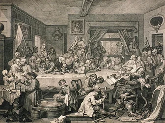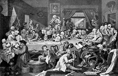 Een verkiezingsfeest, uit 'The Works of William Hogarth', gepubliceerd in 1833(An Election Entertainment, from 'The Works of William Hogarth', published 1833 (engraving))William (after) Hogarth |