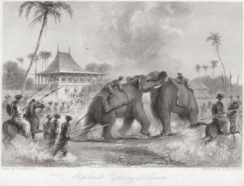 Olifanten vechten in Lucknow(Elephants fighting at Lucknow )William Daniell |