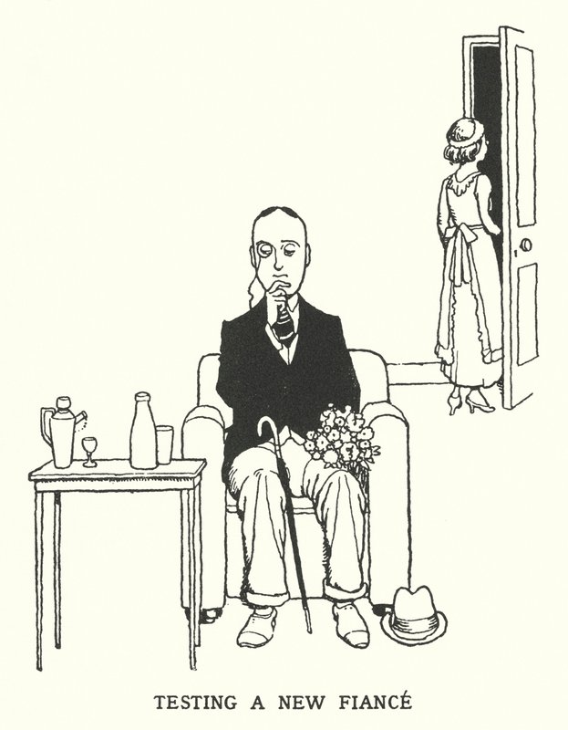 Een nieuwe verloofde testen (litho)(Testing a New Fiance (litho))William Heath Robinson |