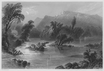 De ontmoeting van de wateren, Vale of Ovoca(The Meeting of the Waters, Vale of Ovoca (engraving))William Henry (after) Bartlett |