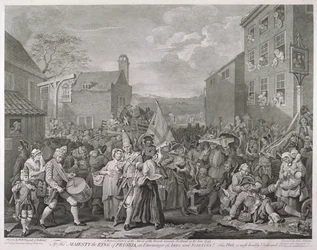 Een voorstelling van de mars van de bewakers naar Schotland in het jaar 1745, gepubliceerd 1750(A Representation of the March of the Guards towards Scotland in the Year 1745, published 1750 )William Hogarth |