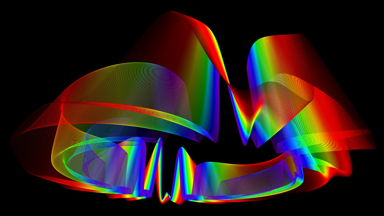 Wit licht "ontbindt" in de bekende spectrale kleuren van de regenboog; de hele structuur ziet er echter onbekend uit, meer als een ruimteschip in de ruimte. De esthetiek van het alledaagse fenomeen wordt gecombineerd met de esthetiek van de onderliggende mathematische fysica.